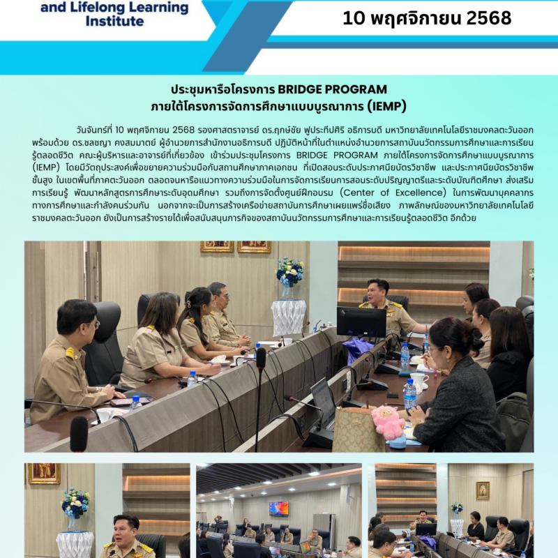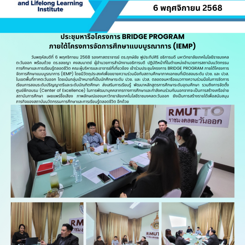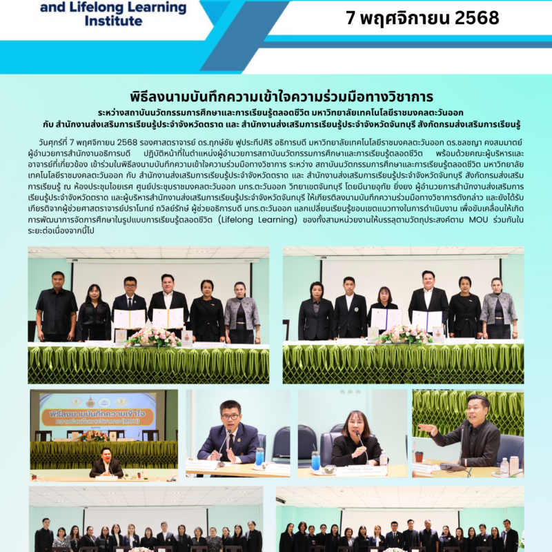 พิธีลงนามบันทึกความเข้าใจความร่วมมือทางวิชาการ ระหว่างสถาบันนวัตกรรมการศึกษาและการเรียนรู้ตลอดชีวิต มหาวิทยาลัยเทคโนโลยีราชมงคลตะวันออก กับ สำนักงานส่งเสริมการเรียนรู้ประจำจังหวัดตราด และ สำนักงานส่งเสริมการเรียนรู้ประจำจังหวัดจันทบุรี สังกัดกรมส่งเสริมการเรียนรู้