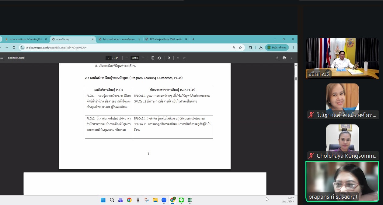 วันอังคารที่ 11 พฤศจิกายน 2568 รองศาสตราจารย์ ดร.ฤกษ์ชัย ฟูประทีปศิริ อธิการบดี มหาวิทยาลัยเทคโนโลยีราชมงคลตะวันออก และ ดร.ชลชญา คงสมมาตย์ ผู้อำนวยการสำนักงานอธิการบดี ปฏิบัติหน้าที่ในตำแหน่งอำนวยการสถาบันนวัตกรรมการศึกษาและการเรียนรู้ตลอดชีวิต พร้อมด้วยคณะผู้บริหารจากหน่วยงานต่าง ๆ ในแต่ละเขตพื้นที่ที่เกี่ยวข้อง ได้เข้าร่วมการประชุมสภาวิชาการ ครั้งที่ 11/2568