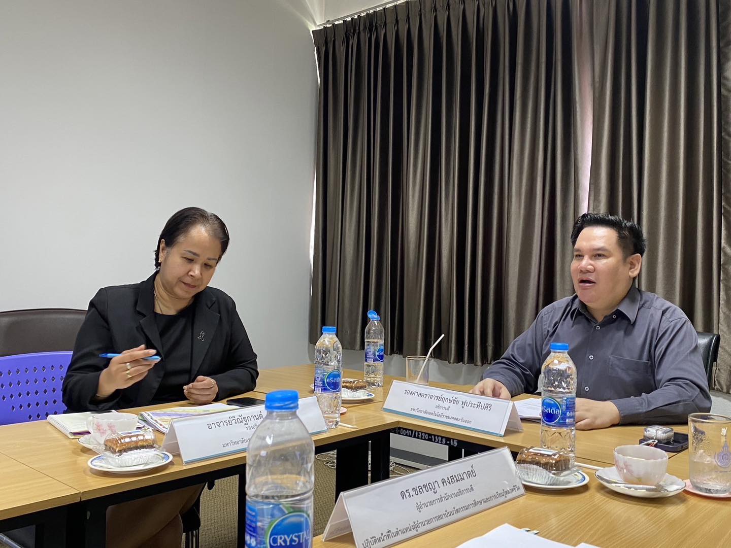 วันพฤหัสบดีที่ 19 พฤศจิกายน 2568 รองศาสตราจารย์ ดร.ฤกษ์ชัย ฟูประทีปศิริ อธิการบดีมหาวิทยาลัยเทคโนโลยีราชมงคลตะวันออก พร้อมด้วย ดร.ชลชญา คงสมมาตย์ ผู้อำนวยการสำนักงานอธิการบดี ปฏิบัติหน้าที่ในตำแหน่งผู้อำนวยการสถาบันนวัตกรรมการศึกษาและการเรียนรู้ตลอดชีวิต ผู้ทรงคุณวุฒิ คณะผู้บริหาร อาจารย์และบุคลากรที่เกี่ยวข้อง เข้าร่วมในการประชุมหารือการจัดตั้งโรงเรียนสาธิตแห่งมหาวิทยาลัยเทคโนโลยีราชมงคลตะวันออก (นานาชาติและพหุภาษา) ณ ห้องประชุมตระการสินธุ์ ชั้น 9 อาคารสรรพวิชญ์บริการเพื่อหารือแนวทางขับเคลื่อนนโยบายการจัดตั้งโรงเรียนสาธิตแห่งมหาวิทยาลัยเทคโนโลยีราชมงคลตะวันออก ลงสู่การปฏิบัติ ให้สำเร็จลุล่วงตามวัตถุประสงค์และเป้าหมายในการสร้างสถานศึกษาสำหรับนักเรียนในรูปแบบนานาชาติและพหุภาษา ต่อไป
