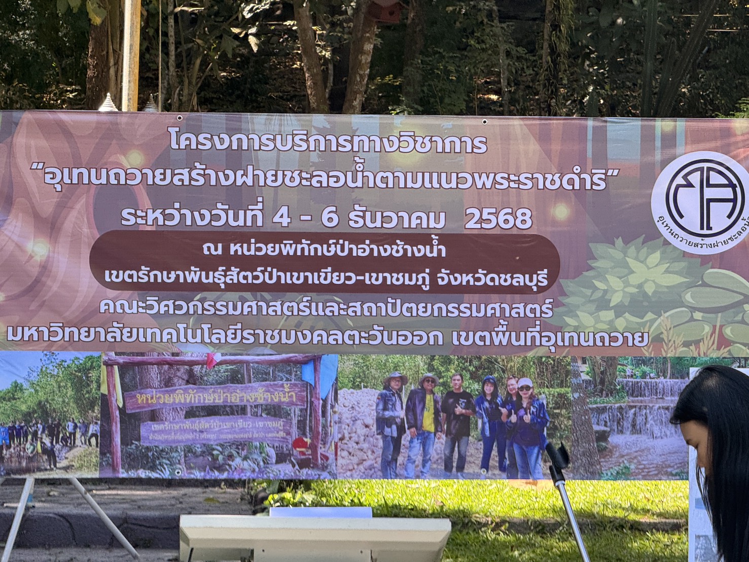 วันศุกร์ที่ 5 ธันวาคม 2568 ดร.ชลชญา คงสมมาตย์ ผู้อำนวยการสำนักงานอธิการบดี ปฏิบัติหน้าที่ในตำแหน่งผู้อำนวยการสถาบันนวัตกรรมการศึกษาและการเรียนรู้ตลอดชีวิต พร้อมด้วยคณะผู้บริหาร คณาจารย์ บุคลากร และ นักศึกษา เข้าร่วมโครงการบริการทางวิชาการ “อุเทนถวายสร้างฝายชะลอน้ำตามแนวพระราชดำริ” ณ หน่วยพิทักษ์ป่าอ่างช้างน้ำ เขตรักษาพันธุ์สัตว์ป่าเขาเขียว-เขาชมภู่ จังหวัดชลบุรี ซึ่งการสร้างฝายชะลอน้ำเป็นมาตรการที่มุ่งจัดการทรัพยากรน้ำอย่างบูรณาการ โดยมุ่งเน้นการฟื้นฟูป่าต้นน้ำ เพิ่มความชุ่มชื้นให้ดิน ลดการพังทลายของหน้าดิน บรรเทาอุทกภัย เสริมสร้างความมั่นคงของแหล่งน้ำในฤดูแล้ง อีกทั้งยังเป็นการสร้างความร่วมมือภายในชุมชนในการบำรุงรักษาฝายให้ดำรงอยู่อย่างยั่งยืน