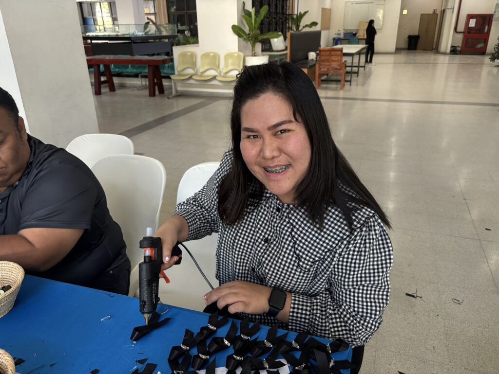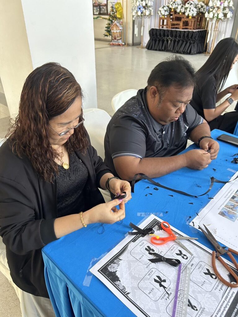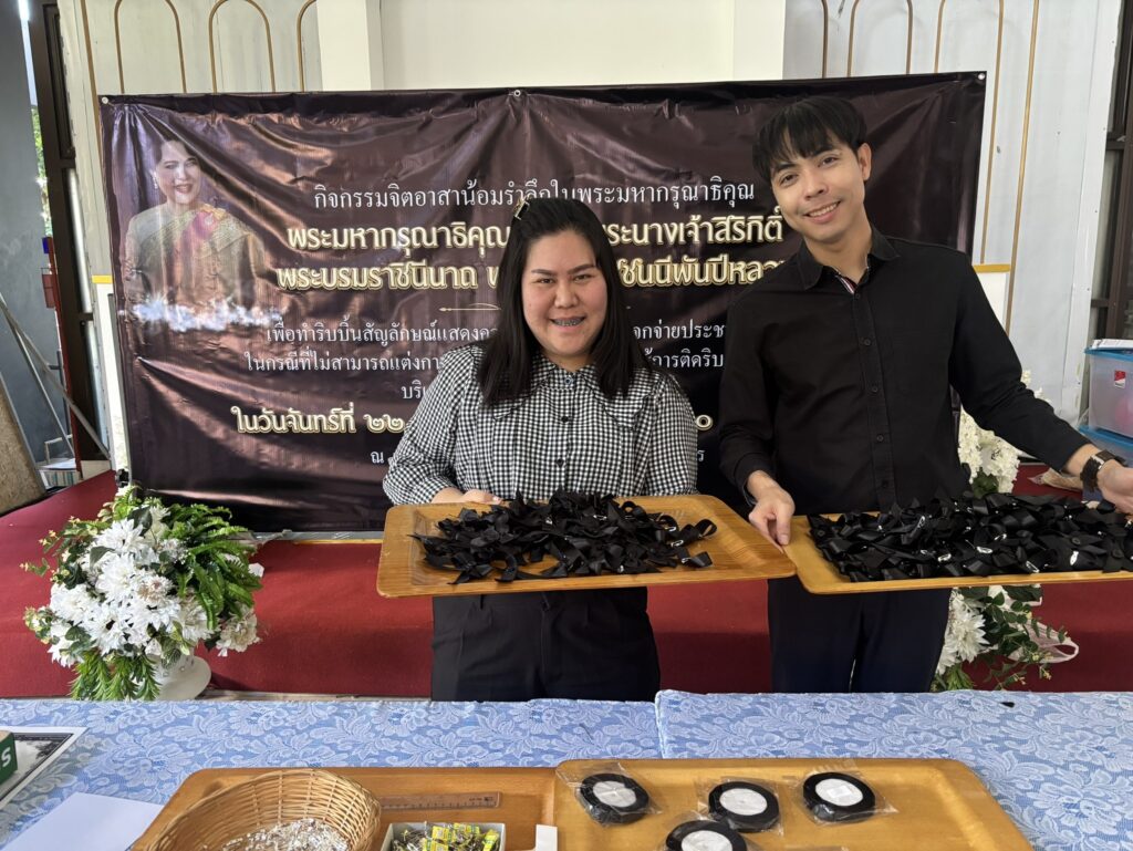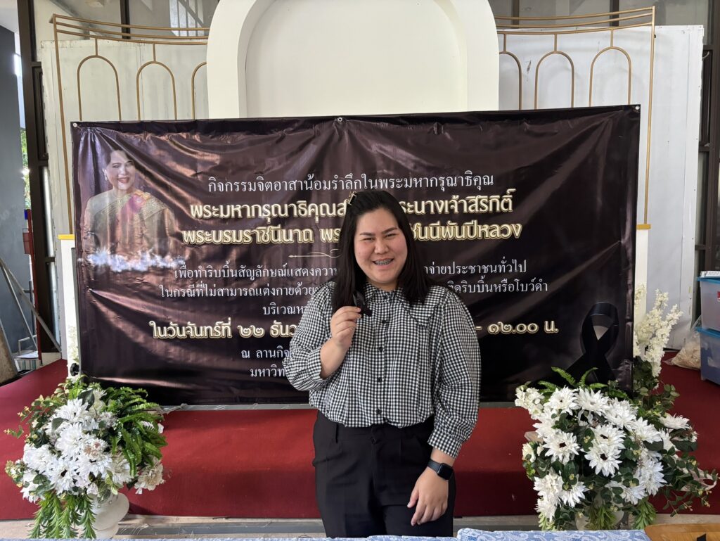 วันจันทร์ที่ 22 ธันวาคม พ.ศ. 2568 นางสาวกัลยาณี มิ่งเจริญพร รองผู้อำนวยการสถาบันนวัตกรรมการศึกษาและการเรียนรู้ตลอดชีวิต พร้อมด้วยบุคคลกรภายในสถาบันนวิตกรรมการศึกษาและการเรียนรู้ตลอดชีวิต เข้าร่วมในกิจกรรมจิตอาสาน้อมรำลึกในพระมหากรุณาธิคุณ สมเด็จพระนางเจ้าสิริกิต์ พระบรมราชินีนาถ พระบรมราชชนนีพันปีหลวง ณ ลานกิจกรรม ชั้น 1 อาคารสรรพวิชญ์บริการ เพื่อทำริบบิ้นสัญลักษณ์ แสดงถึงความอาลัย สำหรับแจกจ่ายประชาชนทั่วไป ในกรณีที่ไม่สามารถแต่งกายในชุดสีดำล้วนได้ โดยสามารถใช้การติดริบบิ้นหรือโบว์สีดำติดบริเวณหน้าอก แทนการสวมชุดดำได้