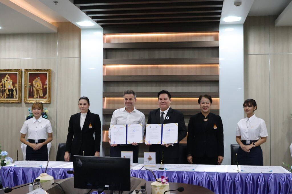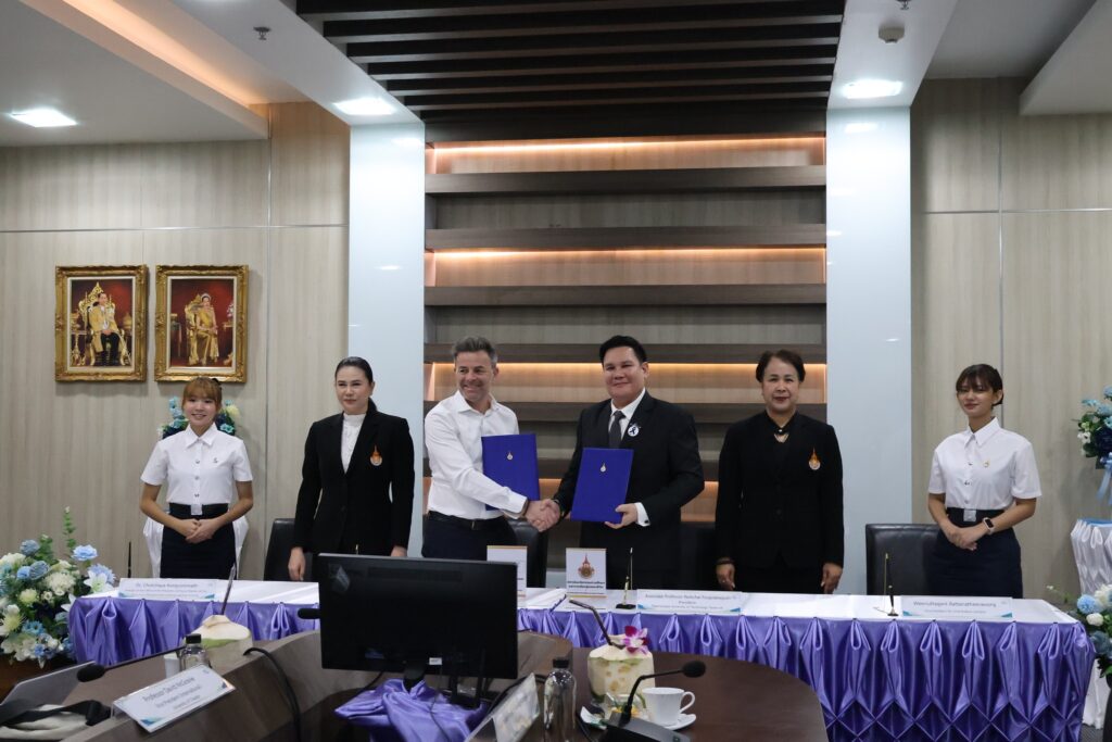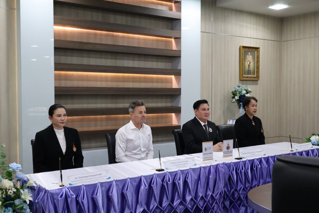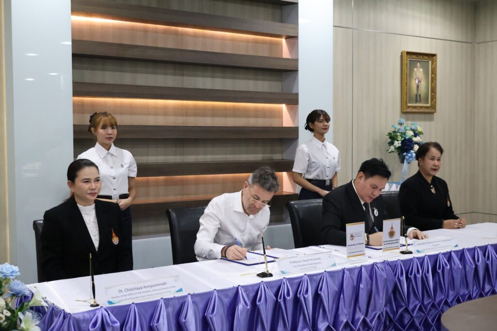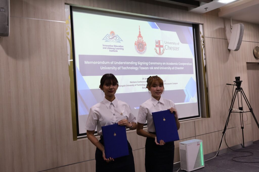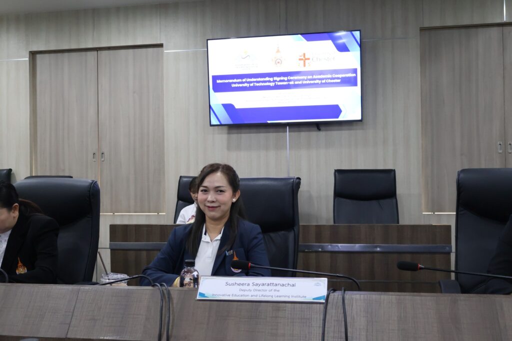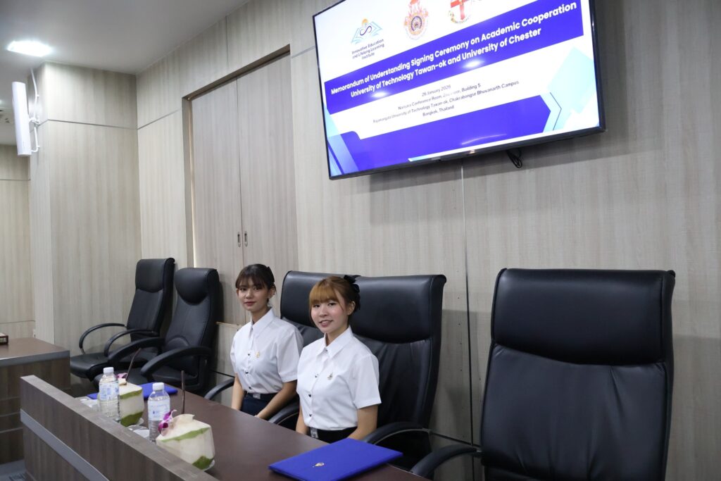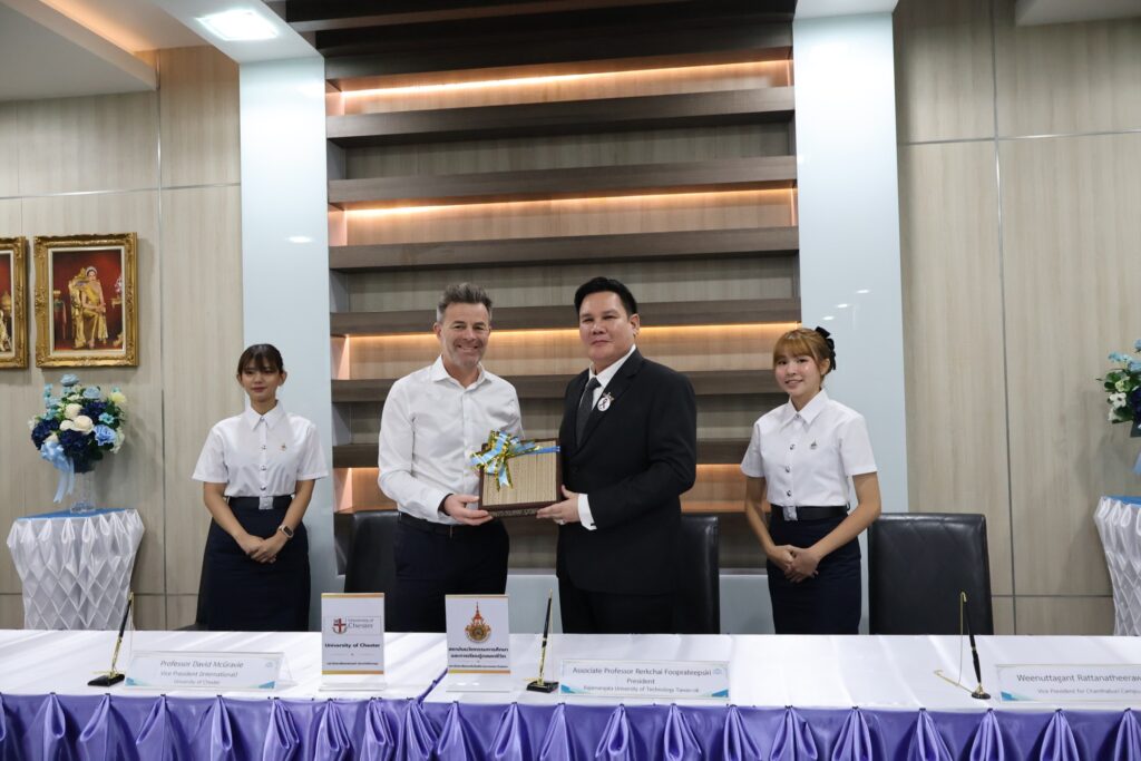 วันจันทร์ที่ 26 มกราคม 2569 รองศาสตราจารย์ ดร.ฤกษ์ชัย ฟูประทีปศิริ อธิการบดีมหาวิทยาลัยเทคโนโลยีราชมงคลตะวันออก อาจารย์วีณัฐกานต์ รัตนธีรวงศ์ รองอธิการบดีประจำวิทยาเขตจันทบุรี ดร.ชลชญา คงสมมาตย์ ผู้อำนวยการสำนักงานอธิการบดี ปฏิบัติหน้าที่ในตำแหน่งผู้อำนวยการสถาบันนวัตกรรมการศึกษาและการเรียนรู้ตลอดชีวิต พร้อมด้วย รองผู้อำนวยการ คณะผู้บริหารและอาจารย์ที่เกี่ยวข้อง เข้าร่วมพิธีลงนามบันทึกความเข้าใจความร่วมมือทางวิชาการ ระหว่าง สถาบันนวัตกรรม การศึกษาและการเรียนรู้ตลอดชีวิต มหาวิทยาลัยเทคโนโลยีราชมงคลตะวันออก กับมหาวิทยาลัยเชสเตอร์ ประเทศอังกฤษ โดยได้รับเกียรติจาก Professor David McGravie (ProVice-Chancellor International and Executive Dean, Faculty of Arts, Humanities and Social Sciences) ร่วมลงนามบันทึกความร่วมมือทางวิชาการดังกล่าว ณ ห้องประชุมนริศรา อาคาร 5 ชั้น 2 มหาวิทยาลัยเทคโนโลยีราชมงคลตะวันออก เขตพื้นที่จักรพงษภูวนารถ กรุงเทพมหานคร การประสานความร่วมมือในครั้งนี้ ไม่เพียงแต่เป็นการสร้างความสัมพันธ์อันดีระหว่างสถาบัน แต่ยังเป็นก้าวสำคัญในการขับเคลื่อนนวัตกรรมการเรียนรู้ตลอดชีวิต ยกระดับมาตรฐานการศึกษา พัฒนาหลักสูตรและการจัดการเรียนการสอนให้สอดคล้องกับมาตรฐานสากล เปิดโอกาสให้นักศึกษาได้รับประสบการณ์การเรียนรู้ในต่างประเทศ กับสถาบันการศึกษาชั้นนำระดับโลก ขยายวิสัยทัศน์และเพิ่มขีดความสามารถในการแข่งขันด้านการผลิตกำลังคนในรูปแบบ Lifelong Learning ในเวทีนานาชาติต่อไป