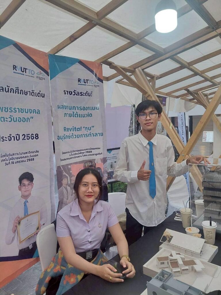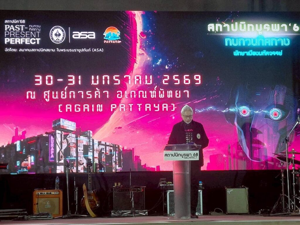 คณาจารย์พร้อมด้วยนักศึกษาสาขาวิชาสถาปัตยกรรมศาสตร์ สถาบันนวัตกรรมการศึกษาและการเรียนรู้ตลอดชีวิต เข้าร่วมงาน “สถาปนิกบูรพา’68” เมื่อวันที่ 30-31 มกราคม 2569 ณ พื้นที่ส่วนกลางโครงการอเกณฑ์ พัทยา อำเภอบางละมุง จังหวัดชลบุรี โดยได้ร่วมออกบูธจัดแสดงผลงานของนักศึกษา กิจกรรมดังกล่าวเป็นส่วนหนึ่งของการขับเคลื่อนนโยบายการเรียนรู้ตลอดชีวิต (Lifelong Learning) และการจัดการศึกษาแบบมุ่งผลลัพธ์ (Outcome-based Education:OBE) เปิดโอกาสให้นักศึกษาได้เรียนรู้จากประสบการณ์จริงนอกห้องเรียนผ่านการปฏิบัติ การแลกเปลี่ยนเรียนรู้และการมีส่วนร่วมกับสถาปนิกวิชาชีพ เครือข่ายสถาบันการศึกษาและหน่วยงานภายนอก เรียนรู้ทักษะการปรับตัวให้เท่าทันต่อการเปลี่ยนแปลงของวิชาชีพสถาปัตยกรรมในบริบทสังคมและเทคโนโลยีที่เปลี่ยนแปลงอย่างรวดเร็ว ซึ่งการจัดงาน“สถาปนิกบูรพา’68” มีวัตถุประสงค์เพื่อเผยแพร่กิจกรรมของคณะกรรมการสถาปนิกบูรพาและสมาคมสถาปนิกสยามในพระบรมราชูปถัมภ์ มุ่งเป้าพัฒนาความรู้ด้านสถาปัตยกรรมในระดับภูมิภาคและการยกระดับองค์ความรู้ด้านสถาปัตยกรรมสมัยใหม่สู่มาตรฐานสากล ส่งเสริมและพัฒนาวิชาชีพสถาปัตยกรรมให้แก่สมาชิก ผู้สอน นักศึกษา และประชาชนทั่วไปในสถาบันการศึกษาด้านสถาปัตยกรรมอย่างยั่งยืน