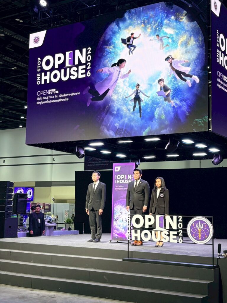 วันศุกร์ที่ 6 มีนาคม 2569 ดร.ชลชญา คงสมมาตย์ ผู้อำนวยการสำนักงานอธิการบดี ปฏิบัติหน้าที่ ในตำแหน่งผู้อำนวยการสถาบันนวัตกรรมการศึกษาและการเรียนรู้ตลอดชีวิต พร้อมด้วยคณะผู้บริหารหน่วยงานภายใน และได้รับเกียรติจาก อาจารย์วีณัฐกานต์ รัตนธีรวงศ์ รองอธิการบดีประจำวิทยาเขตจันทบุรี เข้าร่วมพิธีเปิดงาน “One Stop Open House 2026” ณ Hall 1–2 ศูนย์การประชุมแห่งชาติสิริกิติ์ กรุงเทพมหานคร โดยมี นายสุรศักดิ์ พันธ์เจริญวรกุล รัฐมนตรีว่าการกระทรวงการอุดมศึกษา วิทยาศาสตร์ วิจัยและนวัตกรรม เป็นประธานในพิธีการจัดงานในครั้งนี้มีวัตถุประสงค์เพื่อส่งเสริมการเรียนรู้เชิงบูรณาการและเป็นกลไกสำคัญในการเชื่อมโยงข้อมูลด้านการศึกษา อาชีพ และการพัฒนาศักยภาพของเยาวชน ให้สามารถเข้าถึงหลักสูตรจากมหาวิทยาลัยชั้นนำ ทั่วประเทศ พร้อมทั้งการแนะแนวเส้นทางอาชีพ การเตรียมความพร้อมสู่โลกการทำงาน ตลอดจนการพัฒนา Soft Skills และ Future Skills เพื่อให้สอดคล้องกับความต้องการของโลกในศตวรรษที่ 21