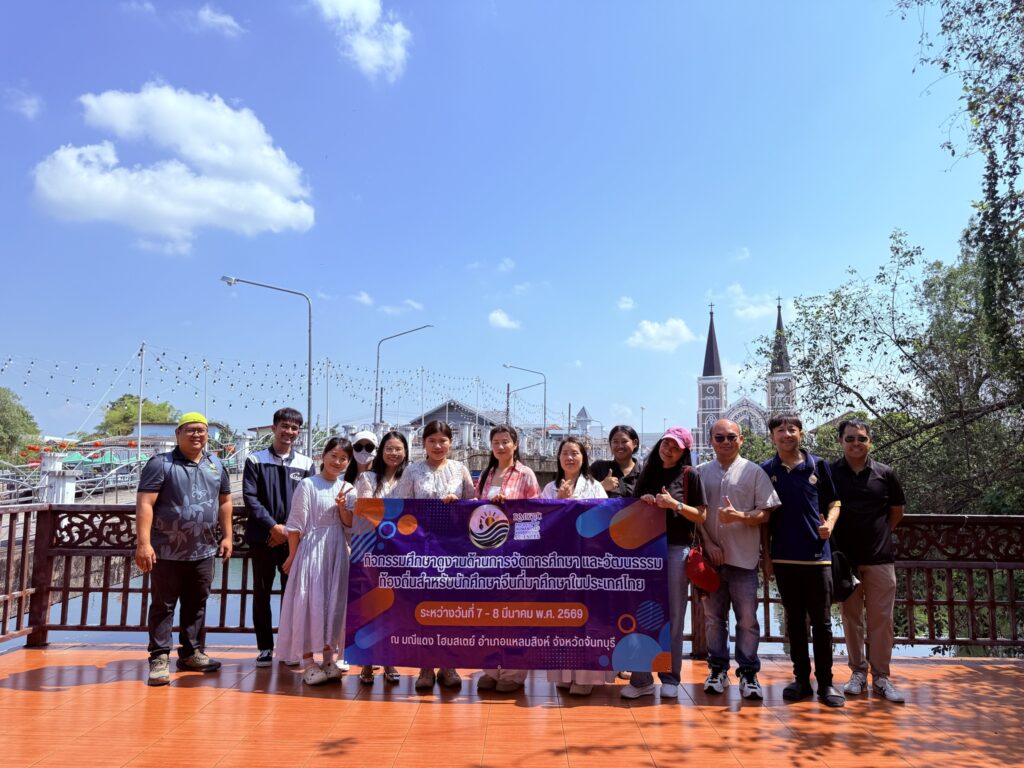 ภาพบรรยากาศนักศึกษาจากสาธารณรัฐประชาชนจีน ในหลักสูตรบริหารธุรกิจมหาบัณฑิต โครงการการจัดการศึกษาร่วมกับคู่ความร่วมมือ ภายใต้โครงการการจัดการศึกษาแบบบูรณาการ (IEMP) เข้าร่วมกิจกรรมศึกษาดูงาน ณ ชุมชนริมน้ำจันทบูร จังหวัดจันทบุรี โครงการดังกล่าวจัดขึ้นโดยความร่วมมือระหว่างสถาบันนวัตกรรมการศึกษาและการเรียนรู้ตลอดชีวิต และคณะมนุษยศาสตร์และสังคมศาตร์ ระหว่างวันที่ 7 – 8 มีนาคม 2569 โดยมีวัตถุประสงค์เพื่อเปิดโอกาสให้นักศึกษาได้เรียนรู้จากประสบการณ์จริง ผ่านการศึกษาประวัติศาสตร์ วัฒนธรรมและแนวทางการจัดการของชุมชนเศรษฐกิจเก่าแก่ที่มีเอกลักษณ์ ที่สะท้อนสายสัมพันธ์ไทย – จีน ที่สืบทอดมาอย่างยาวนาน นักศึกษาได้เรียนรู้อัตลักษณ์ของชุมชน การอนุรักษ์คุณค่าทางวัฒนธรรมท้องถิ่น รวมทั้งเข้าร่วมกิจกรรม Workshop เพื่อสะท้อนแนวคิด แลกเปลี่ยนมุมมองและวิเคราะห์ความแตกต่างทางวัฒนธรรม (Cross – Cultural Learning) ช่วยเสริมสร้างความเข้าใจระหว่างวัฒนธรรมในบริบทสังคมนานาชาติ เป็นส่วนหนึ่งของการพัฒนาทักษะการเรียนรู้นอกห้องเรียนตามหลักแนวคิดการเรียนรู้ตลอดชีวิต (Lifeling Learning) มุ่งสร้างเสริมศักยภาพของนักศีกษานานาชาติ พร้อมทั้งส่งเสริมความร่วมมือระหว่างประเทศไทยและสาธารณรัฐประชาชนจีนให้เข้มแข็งยิ่งขึ้น