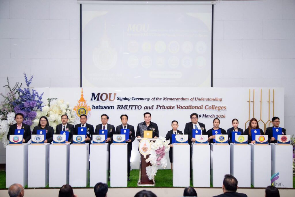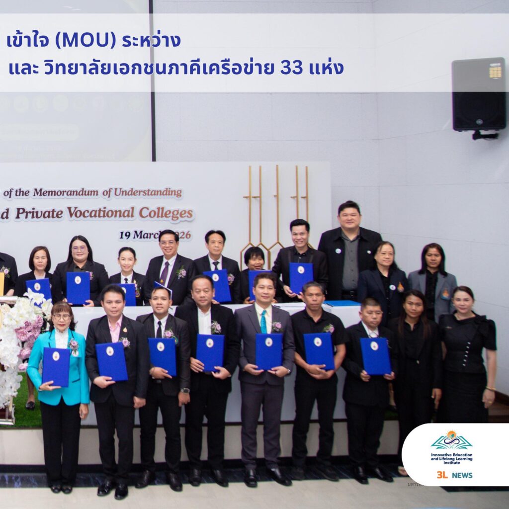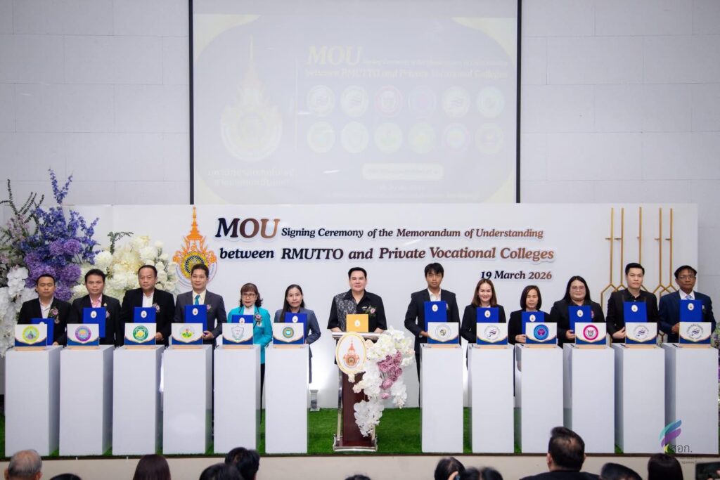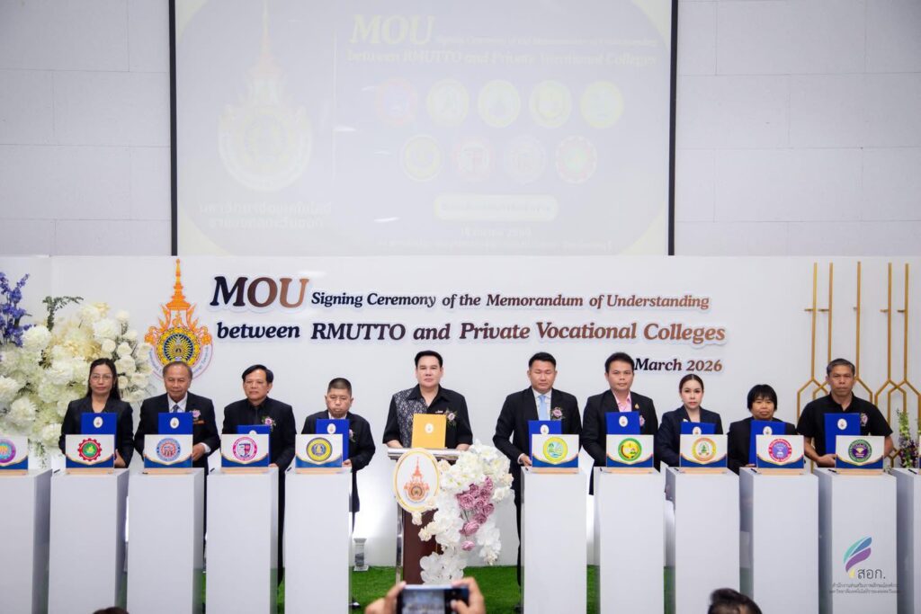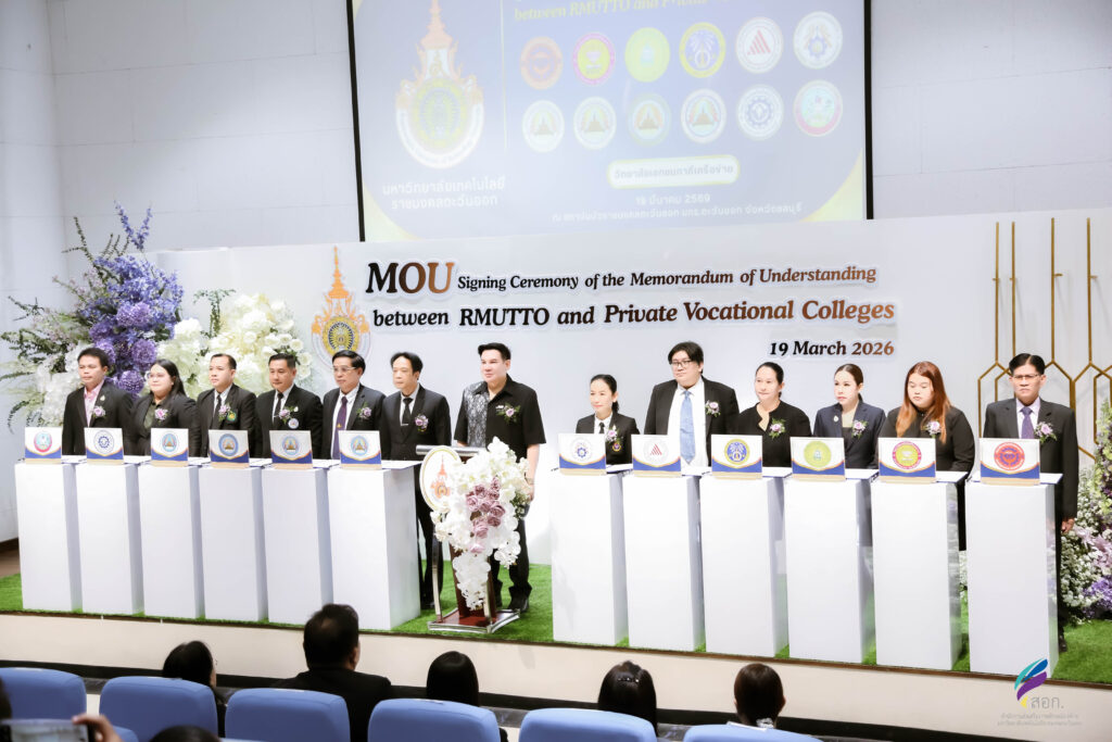 วันพฤหัสบดีที่ 19 มีนาคม 2569 มหาวิทยาลัยเทคโนโลยีราชมงคลตะวันออก โดย ดร.ชลชญา คงสมมาตย์ผู้อำนวยการสำนักงานอธิการบดี ปฏิบัติหน้าที่ผู้อำนวยการสถาบันนวัตกรรมการศึกษาและการเรียนรู้ตลอดชีวิต พร้อมด้วยคณะผู้บริหาร เข้าร่วมในพิธีลงนามบันทึกข้อตกลงความร่วมมือทางวิชาการ (MOU) กับวิทยาลัยเอกชน จำนวน 33 แห่ง ณ สถาบันบัวราชมงคลตะวันออก เขตพื้นที่บางพระ จังหวัดชลบุรี โดยได้รับเกียรติจาก รองศาสตราจารย์ ดร.ฤกษ์ชัย ฟูประทีปศิริ อธิการบดี มทร.ตะวันออก เป็นประธานกล่าวต้อนรับ พร้อมทั้ง ผู้ช่วยศาสตราจารย์ปราโมทย์ ถวิลรักษ์ ผู้ช่วยอธิการบดี กล่าวถึงวัตถุประสงค์และขอบเขตของความร่วมมือที่มุ่งเน้นการพัฒนาศักยภาพทางวิชาการและยกระดับคุณภาพการจัดการศึกษาอย่างเป็นรูปธรรม ซึ่งความร่วมมือในครั้งนี้ ดำเนินการโดย สถาบันนวัตกรรมการศึกษาและการเรียนรู้ตลอดชีวิต สะท้อนให้เห็นถึง “ความพร้อมรอบด้าน” ของมหาวิทยาลัยเทคโนโลยีราชมงคลตะวันออก ทั้งในด้านผู้สอนที่มีความเชี่ยวชาญ เทคโนโลยี นวัตกรรมการเรียนการสอนที่ทันสมัย รวมทั้งระบบสนับสนุนการเรียนรู้ที่ยืดหยุ่น ครอบคลุมทั้งรูปแบบออนไซต์และออนไลน์ ซึ่งเป็นกลไกสำคัญในการขับเคลื่อนการศึกษายุคใหม่ที่มุ่งเน้นการพัฒนาทักษะแห่งศตวรรษที่ 21 ส่งเสริมแนวคิดการเรียนรู้ตลอดชีวิต (Lifelong Learning) ที่เปิดโอกาสให้คนทุกช่วงวัยสามารถเข้าถึงการศึกษา ได้อย่างเท่าเทียม การลงนามความร่วมมือครั้งนี้ นับเป็นก้าวสำคัญที่ได้รับความเชื่อมมั่นจากวิทยาลัยเอกชนภาคีเครือข่าย ทั้ง 33 หน่วยงาน ที่ไม่เพียงแต่ช่วยเพิ่มโอกาสทางการศึกษาให้แก่ผู้เรียน แต่ยังเป็นพลังขับเคลื่อนในการยกระดับคุณภาพการศึกษา สู่ความยั่งยืนร่วมกันในอนาคตต่อไป