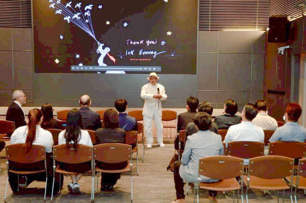 ภาพบรรยากาศคณาจารย์ สาขาสถาปัตยกรรมศาสตร์ สถาบันนวัตกรรมการศึกษาและการเรียนรู้ตลอดชีวิต มทร.ตะวันออก เข้าร่วมพิธีรับมอบแบบสถาปัตยกรรมเพื่อการศึกษาจากคุณเล็ก เมธา บุนนาค ศิลปินแห่งชาติ สาขาทัศนศิลป์ (สถาปัตยกรรม) และยังดำรงตำแหน่ง ผู้บริหาร บริษัท บุนนาค อาร์คิเท็คส อินเตอร์เนชั่นแนล คอนซัลแทนท์ส จำกัด โดยมีสมาคมสถาปนิกสยามในพระบรมราชูปถัมภ์ เป็นหน่วยงานกลางในการจัดงาน กิจกรรมนี้ นับเป็นโอกาสที่ดีสำหรับผู้เข้าร่วมในการสร้างแรงบันดาลใจ สะท้อนแนวคิดและความสำเร็จของบุคคลต้นแบบ ในวิชาชีพสถาปนิกให้แก่ผู้สอน นำผลงานจริงของผู้เชี่ยวชาญระดับประเทศ ไปประยุกต์ใช้เป็นสื่อประกอบการเรียนการสอนเพื่อส่งเสริมการพัฒนาศักยภาพทางวิชาชีพของนักศึกษาได้อย่างเห็นผลเชิงประจักษ์ ผ่านการเรียนรู้จากประสบการณ์จริง จัดขึ้น ณ สมาคมสถาปนิกสยาม ในพระบรมราชูปถัมภ์ ห้องประชุมพระสาโรจน์ รัตนนิมานก์ กรุงเทพมหานคร