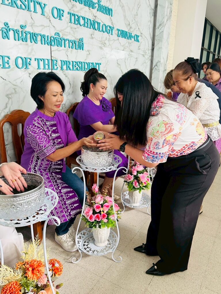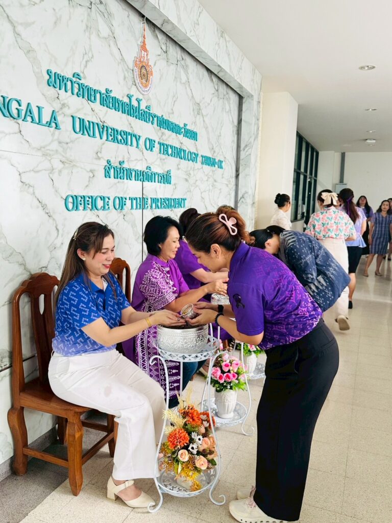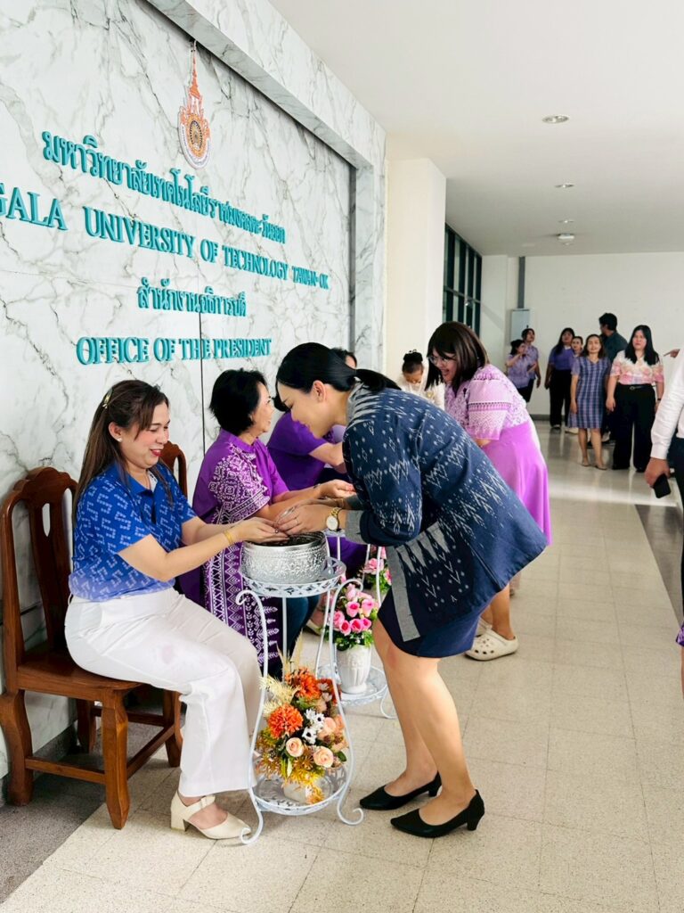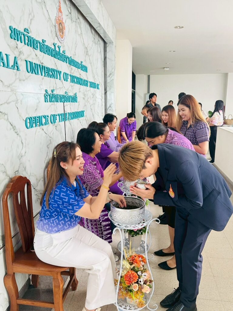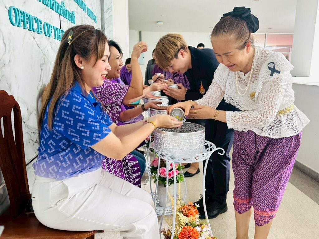 ภาพบรรยากาศ บุคลากร สนร. ร่วม “สืบสานประเพณีไทย รดน้ำขอพรคณะผู้บริหาร เนื่องในเทศกาลสงกรานต์ ประจำปี 2569” เพื่ออนุรักษ์วัฒนธรรมอันดีงามและเสริมสร้างความรักความสามัคคีภายในองค์กร ณ สำนักงานอธิการบดี ชั้น 9 อาคารสรรพวิชญ์บริการ มทร.ตะวันออก เขตพื้นที่บางพระ จังหวัดชลบุรี กิจกรรมดังกล่าวนอกจากทุกคนจะได้ร่วมสืบสาน ทำนุบำรุงวัฒนธรรมองค์กรแบบไทยแล้ว ผู้บริหารได้เปิดโอกาสให้บุคลากร ร่วมแสดงมุทิตาจิต รดน้ำดำหัวและขอรับพรปีใหม่ไทย โดยเน้นย้ำถึงความสำคัญของพลังความร่วมมือในการ ขับเคลื่อนองค์กรให้เจริญก้าวหน้า สร้างขวัญและกำลังใจที่ดี ในการปฏิบัติหน้าที่ต่อไป