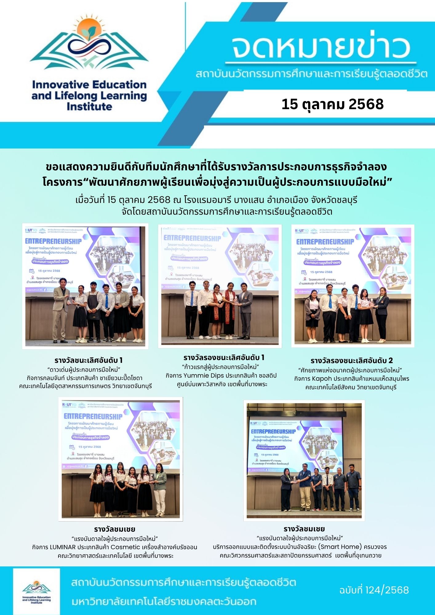 ขอแสดงความยินดีกับทีมนักศึกษาที่ได้รับรางวัลการประกอบการธุรกิจจำลอง โครงการ“พัฒนาศักยภาพผู้เรียนเพื่อมุ่งสู่ความเป็นผู้ประกอบการแบบมือใหม่”