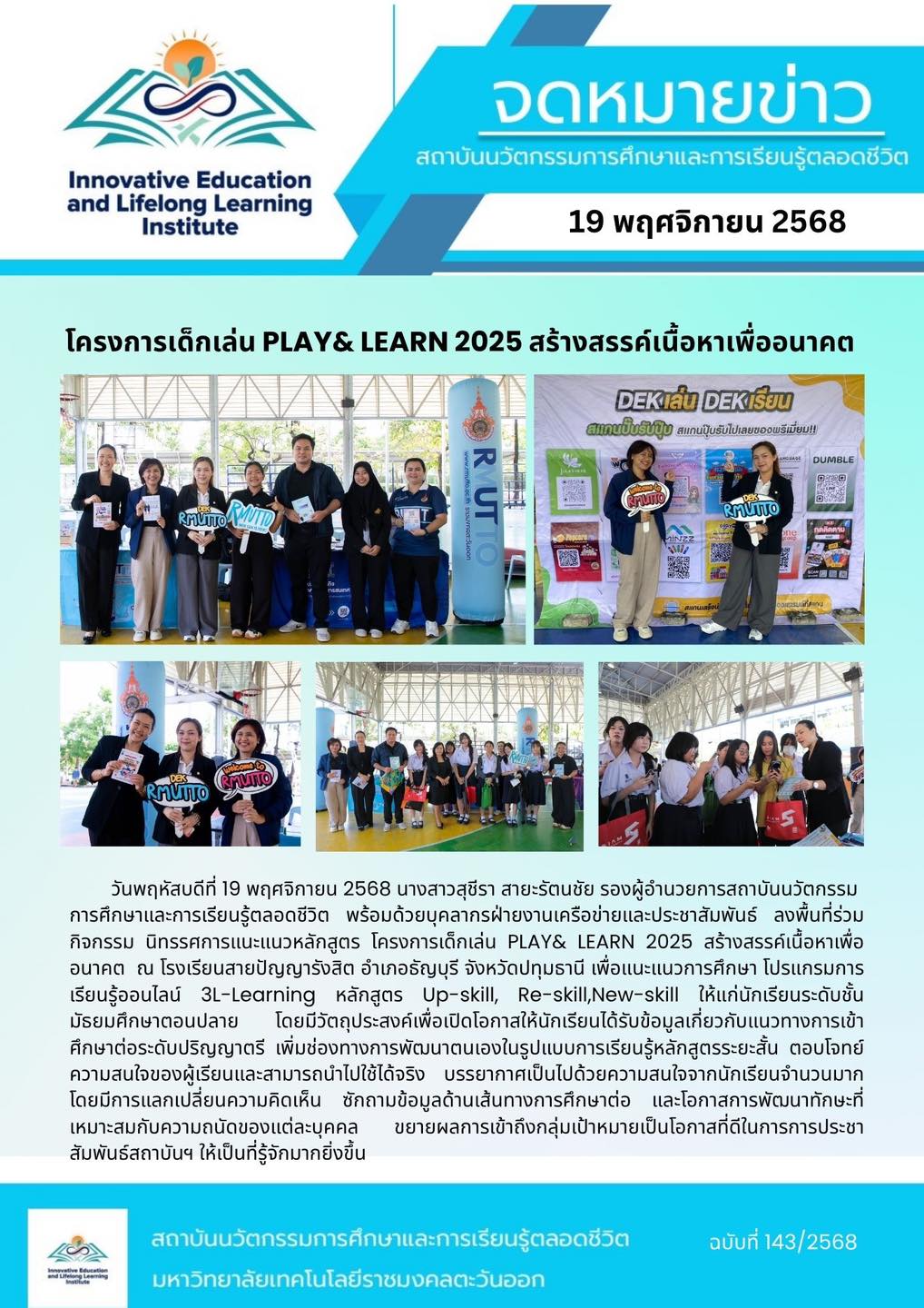 โครงการเด็กเล่น PLAY& LEARN 2025 สร้างสรรค์เนื้อหาเพื่ออนาคต