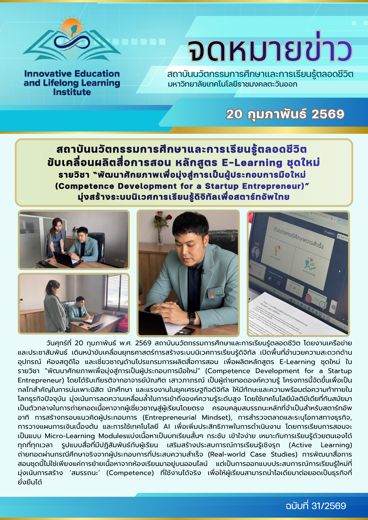 สถาบันนวัตกรรมการศึกษาและการเรียนรู้ตลอดชีวิต ขับเคลื่อนผลิตสื่อการสอน หลักสูตร E-Learning ชุดใหม่ รายวิชา “พัฒนาศักยภาพเพื่อมุ่งสู่การเป็นผู้ประกอบการมือใหม่ (Competence Development for a Startup Entrepreneur)” มุ่งสร้างระบบนิเวศการเรียนรู้ดิจิทัลเพื่อสตาร์ทอัพไทย