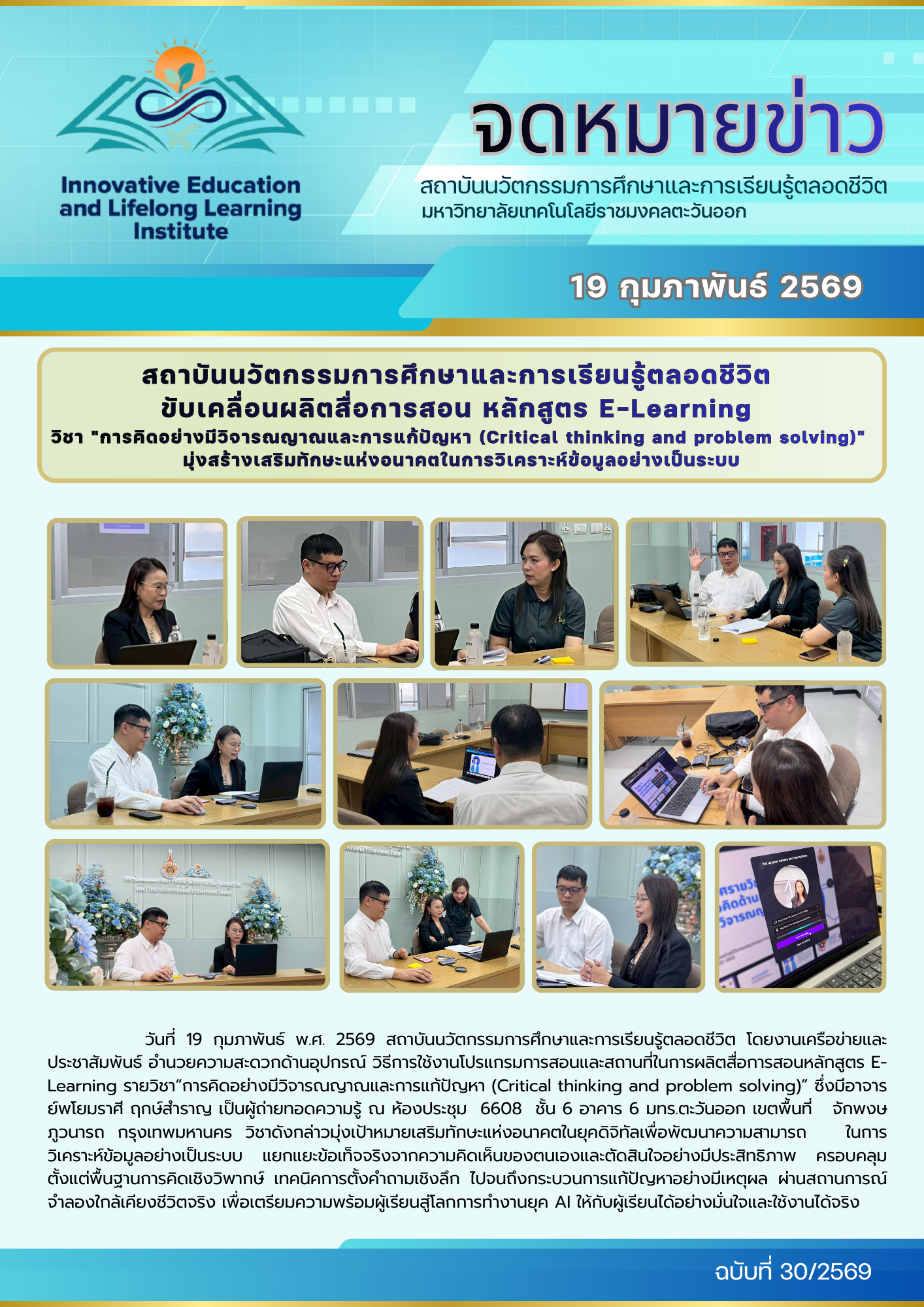 สถาบันนวัตกรรมการศึกษาและการเรียนรู้ตลอดชีวิต ขับเคลื่อนผลิตสื่อการสอน หลักสูตร E-Learning วิชา “การคิดอย่างมีวิจารณญาณและการแก้ปัญหา (Critical thinking and problem solving)” มุ่งสร้างเสริมทักษะแห่งอนาคตในการวิเคราะห์ข้อมูลอย่างเป็นระบบ