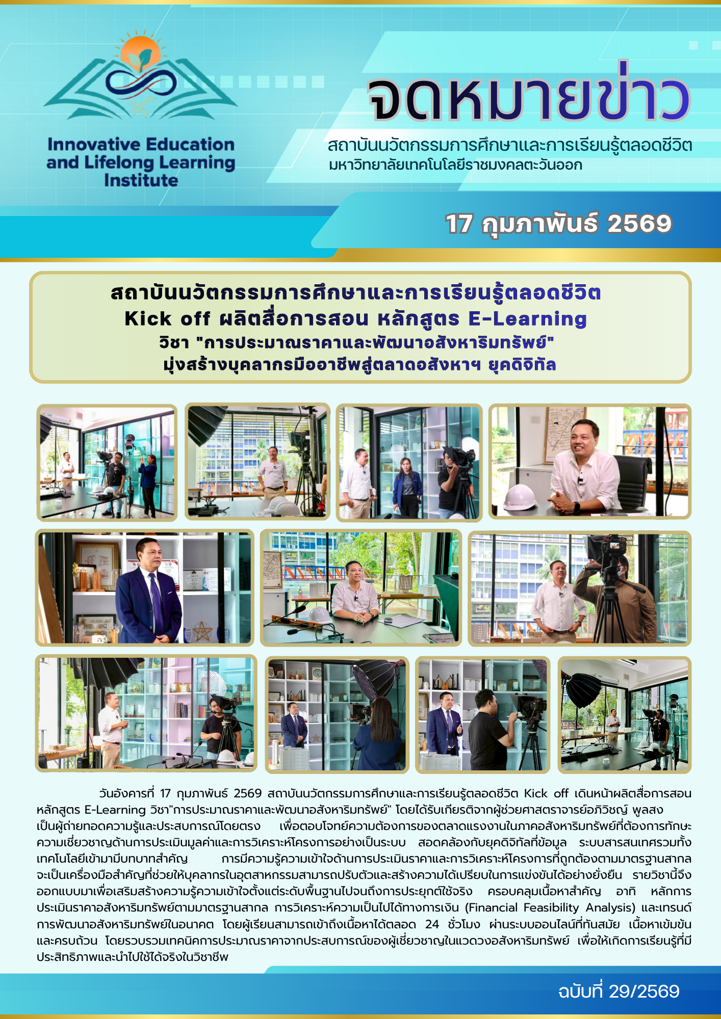 สถาบันนวัตกรรมการศึกษาและการเรียนรู้ตลอดชีวิต Kick off ผลิตสื่อการสอน หลักสูตร E-Learning วิชา “การประมาณราคาและพัฒนาอสังหาริมทรัพย์” มุ่งสร้างบุคลากรมืออาชีพสู่ตลาดอสังหาฯ ยุคดิจิทัล