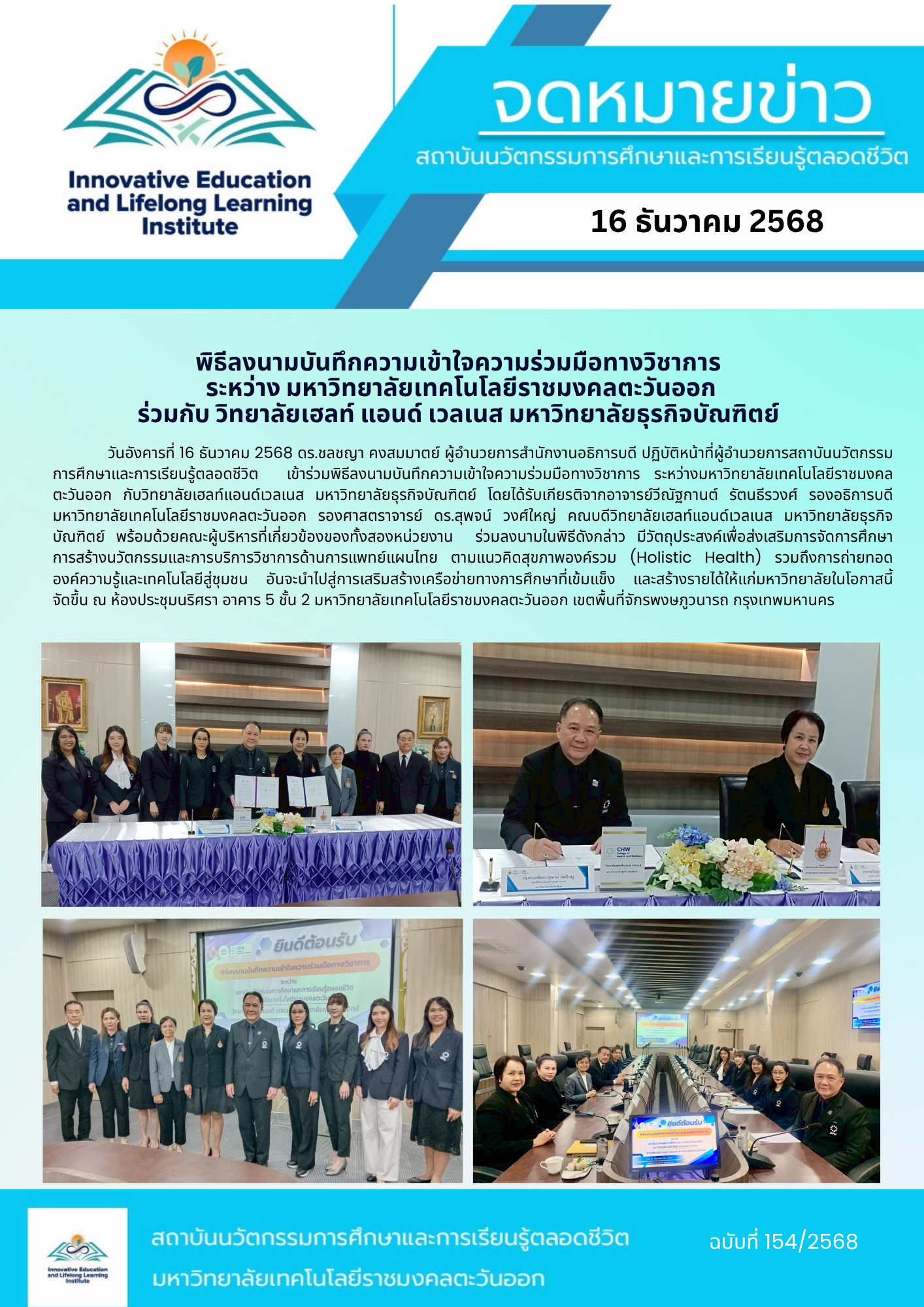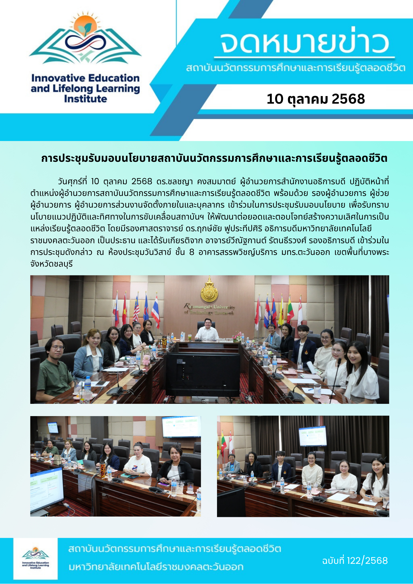 การประชุมหารือระหว่าง มทร.ตะวันออก กับมหาวิทยาลัยวิศวกรรมสารสนเทศอันหุยเหวินต้า (Anhui Wenda University of Information Englineering) ภายใต้โครงการพัฒนาศักยภาพอาจารย์และบุคลกรไทย – จีน